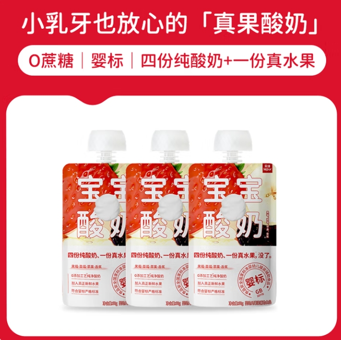 14元!乐纯婴标 宝宝酸奶草莓味50g*18袋(返60元E卡后)