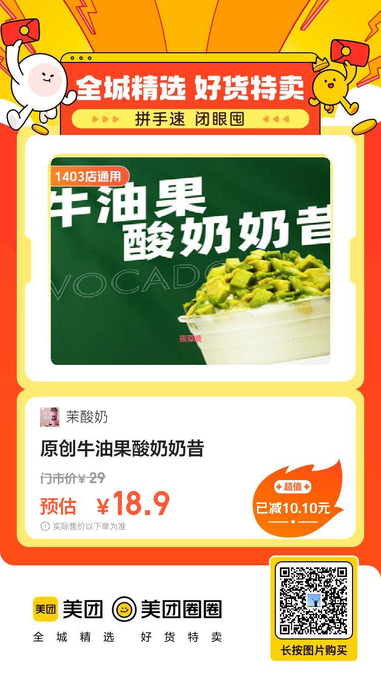 18.9元,茉酸奶原创牛油果酸奶奶昔,用券下单即可;