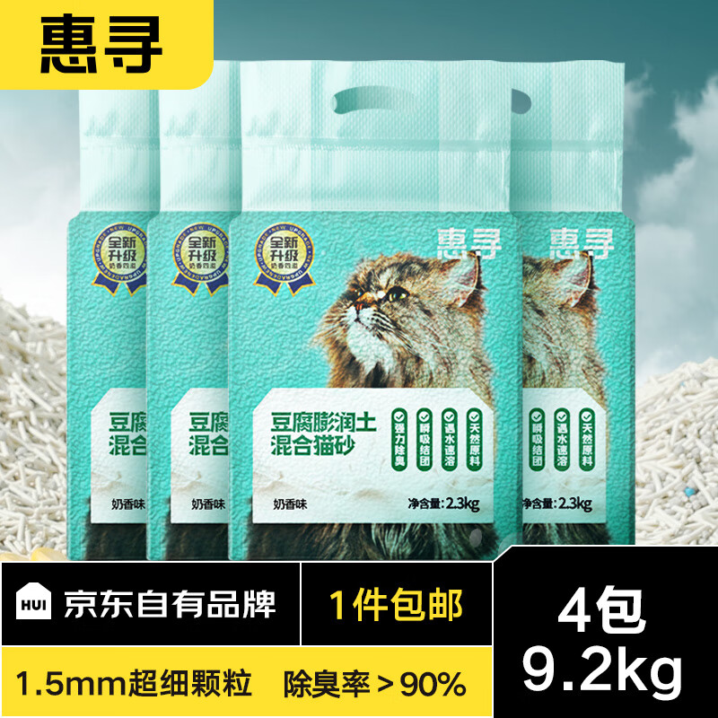 ¥47.8 惠寻 京东自有品牌 3合1混合猫砂奶香味2.3kg*4包 豆腐膨润土科学配比 49.8