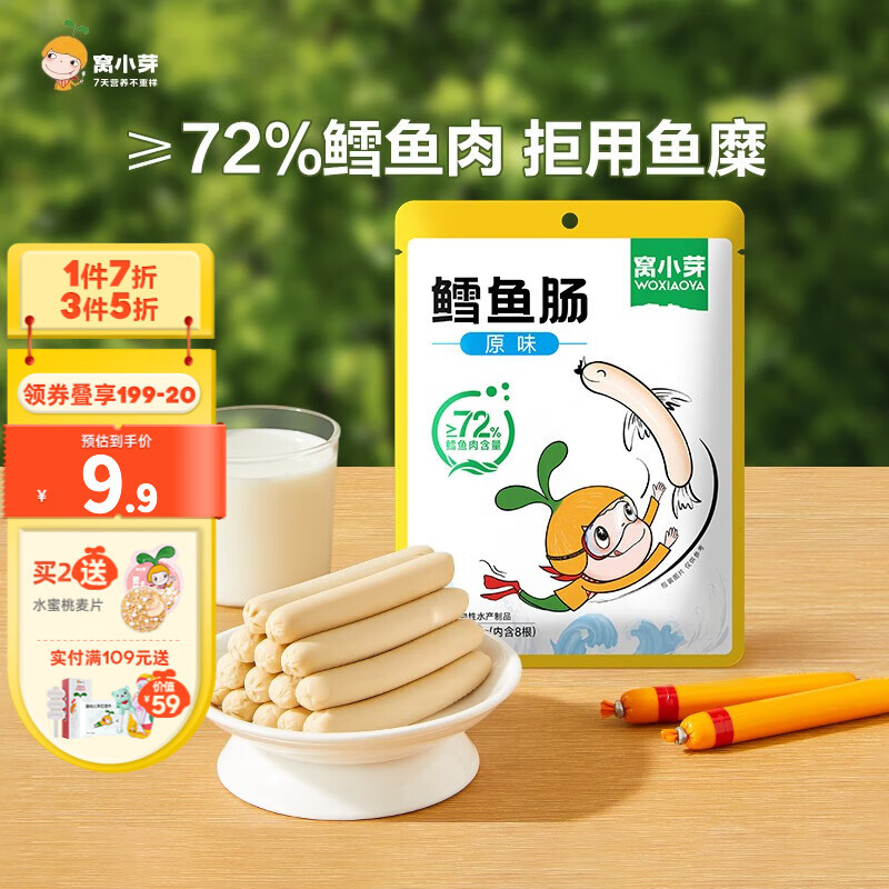 ¥18.9 窝小芽鳕鱼肠 ≥72%深海鳕鱼肉火腿肠不添加防腐剂营养儿童零食鱼肠 鳕鱼肠原味*1 19.9