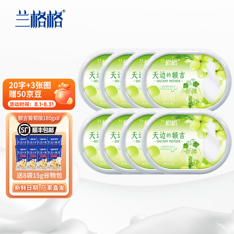 ¥81.9 兰格格天边的额吉葡萄味180g*8 生鲜低温酸奶酸牛奶 厂商直送 89.9