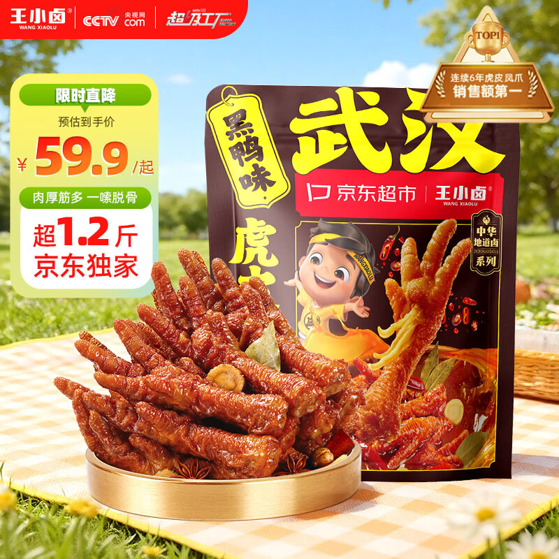 王小卤虎皮凤爪黑鸭味618g仅需59.9元