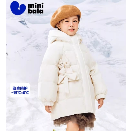 80元!迷你巴拉巴拉 女童羽绒服连帽中长款