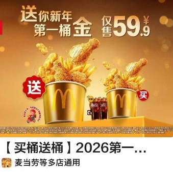 【美团】55元!麦当劳 2026金桶 四拼小食金桶2+饮品2