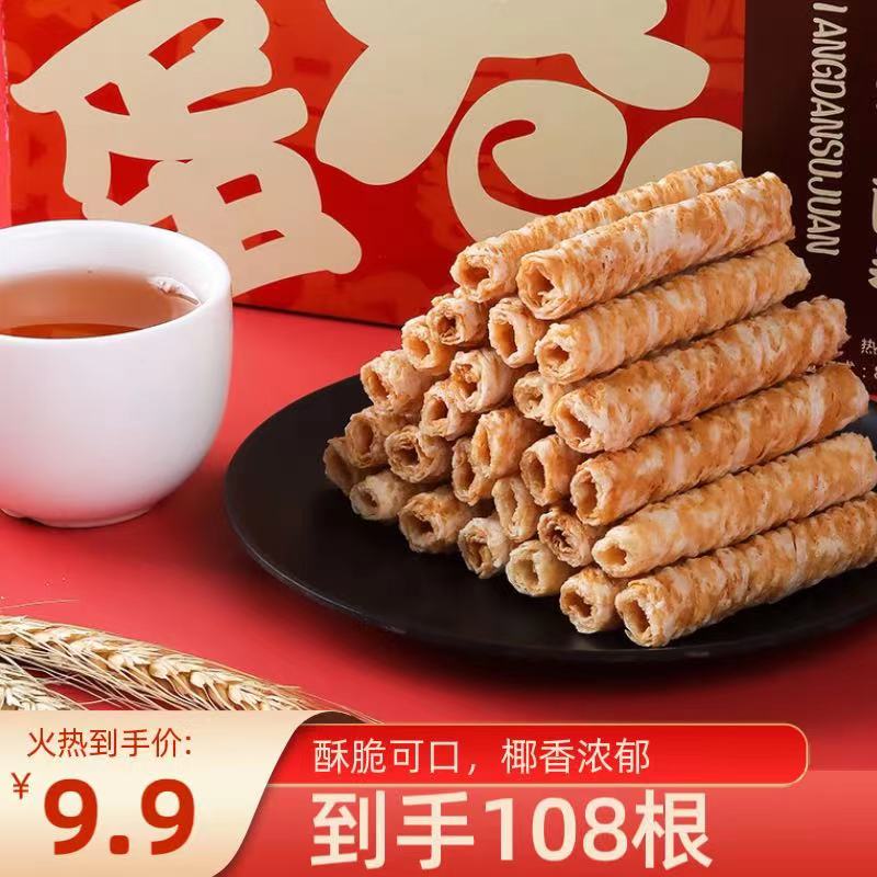 ¥9.90 【宠粉福利到手108根】椰浆蛋酥卷印尼椰子味蛋酥卷椰香酥脆微甜 9.90