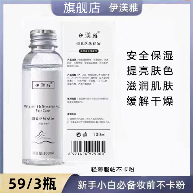 ¥59.00 【大婷专属】拍1发3伊渼雅维E甘油保湿护肤清爽不油腻不卡粉浮粉 59.00