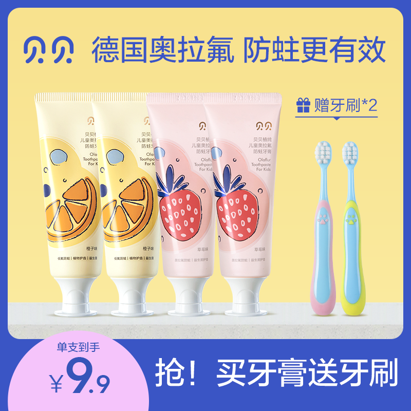 ¥39.60 贝贝奥拉氟儿童牙膏含氟防蛀牙齿防龋婴儿学生宝宝专用1-3-6-12岁 39.60