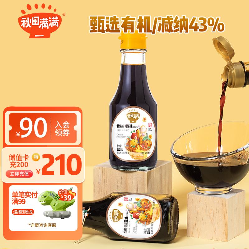 ¥10.9 秋田满满 特级有机酱油150ml 减盐型 调味料儿童调料_享婴儿宝宝辅食食谱 29.9