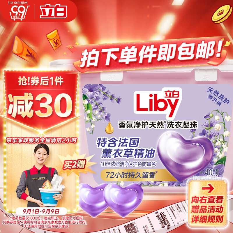 ¥49.9 立白香氛净护精油洗衣凝珠 薰衣草72h留香 防串色 浓缩香氛洗衣液40颗 69.9