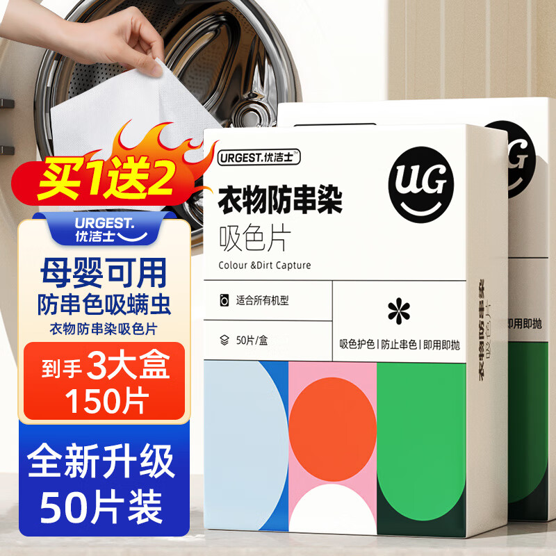¥19.9 优洁士 吸色片防染色洗衣片防串色色母片母婴可用衣物串色染色洗衣神器防串染色纸洗衣泡泡纸色母片 防串染吸色片50片装 39.9