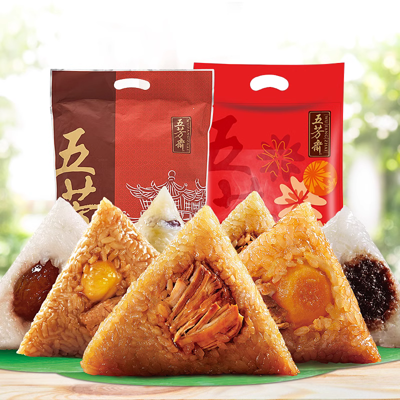 ¥19.79 可签到+拍2件!五芳斋肉粽共140GX8只 31.79