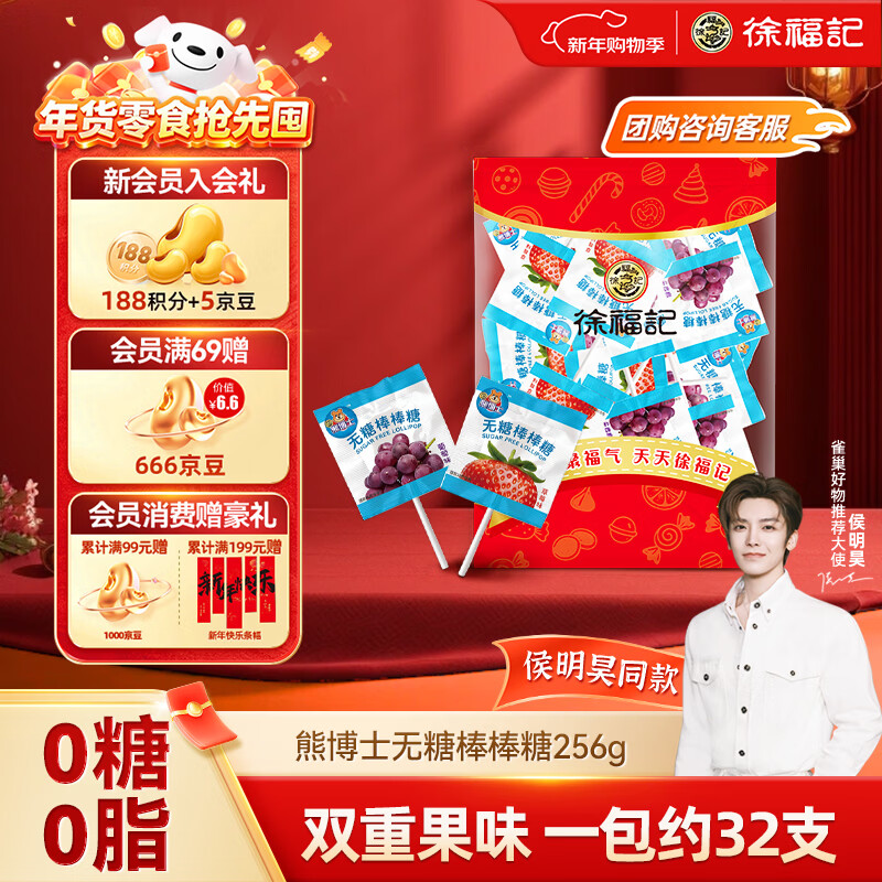 徐福记熊博士无糖棒棒糖 256g,Plus 会员拍 2 件仅需 25.7 元!