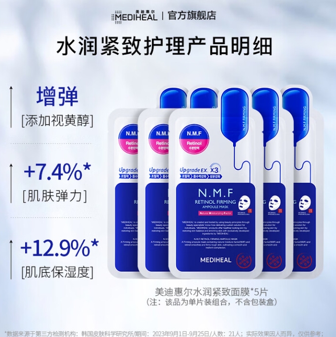 4.9元!美迪惠尔(Mediheal)全新升级款 新水润紧致面膜5片