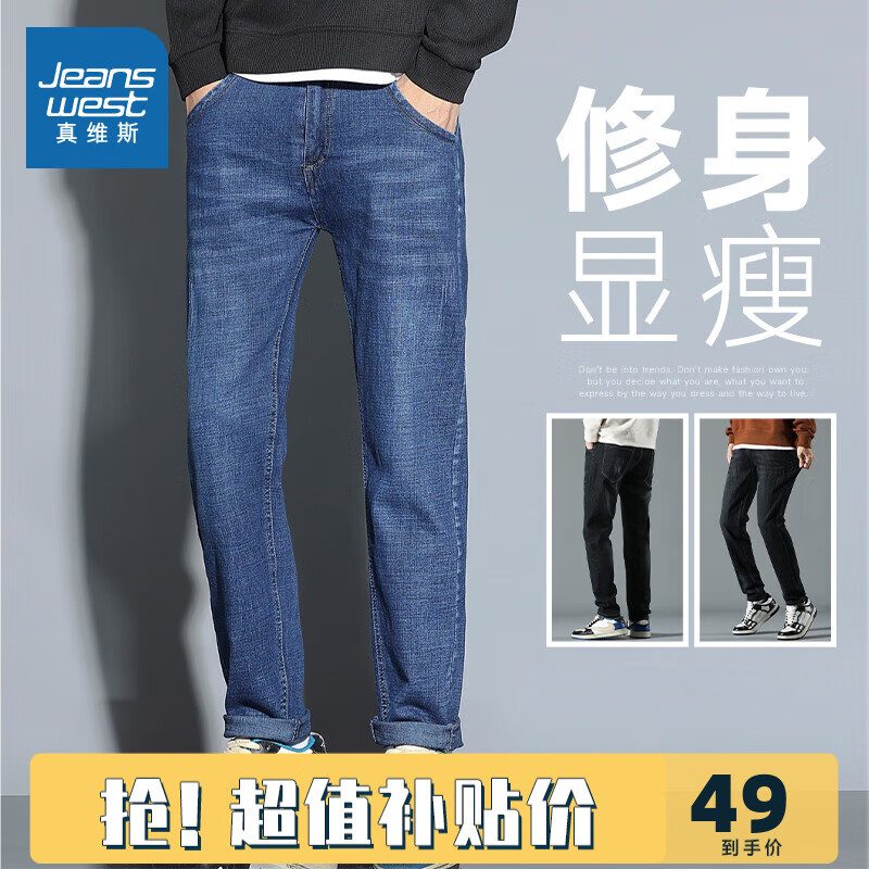 ¥49 真维斯牛仔裤男款2023秋季新款厚款长裤蓝色时尚百搭微弹休闲裤子KRP A款靛蓝色2570 32 69