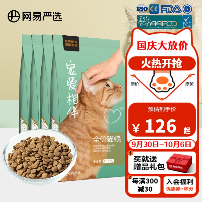 ¥116 网易严选【推荐】宠爱相伴全阶段猫粮 优质蛋白质 增加体质 公益猫粮 通用 | 公益猫粮 7.2kg 袋装 126