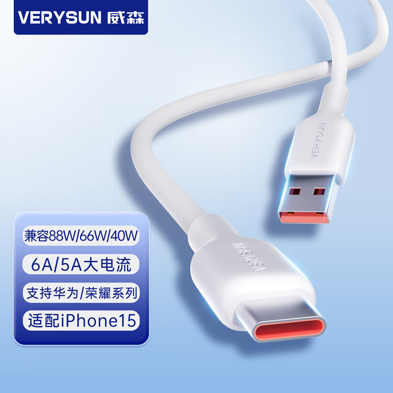 ¥1.1 verysun威森Type-C数据线6A超级快充100W/66W通用华为充电线P50/Mate60荣耀70Pro/50小米安卓手机线车载1m 【100W快充】AtoType-c数据线1m 5.1