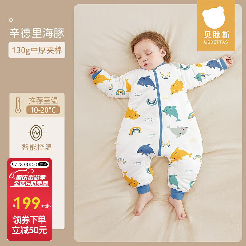 ¥209 贝肽斯肽棉婴儿睡袋春秋冬恒温防踢被新生儿防惊跳抱被分腿四季睡袋 秋冬中厚-恒温(10-20℃)海豚 S码 建议身高60-85cm 249