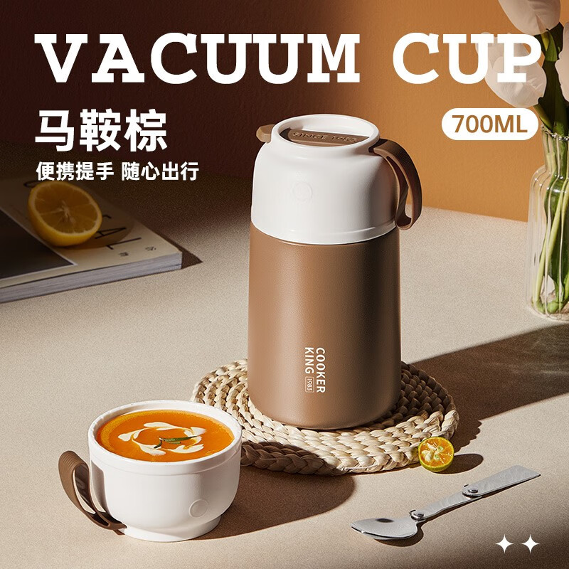 ¥35.9 炊大皇(COOKER KING)焖烧杯316不锈钢焖烧壶便携保温饭盒真空保温杯男女士闷烧壶罐 马鞍棕700ml【316不锈钢】 69.9