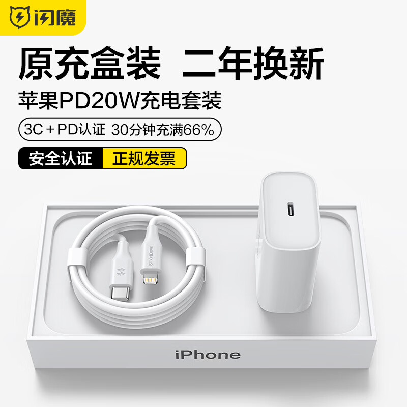 ¥39 闪魔苹果充电器PD20W快充套装iPhone14promax13/12/11充电头苹果数据线充电线type-C华为手机平板 PD20W充电器+PD20W数据线(套装) 89