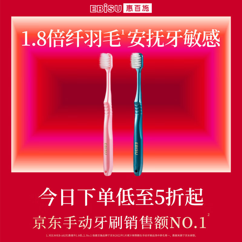 ¥21.9 惠百施纤羽护龈清新口腔成人情侣孕妇软毛牙刷日本进口2支装 40.9