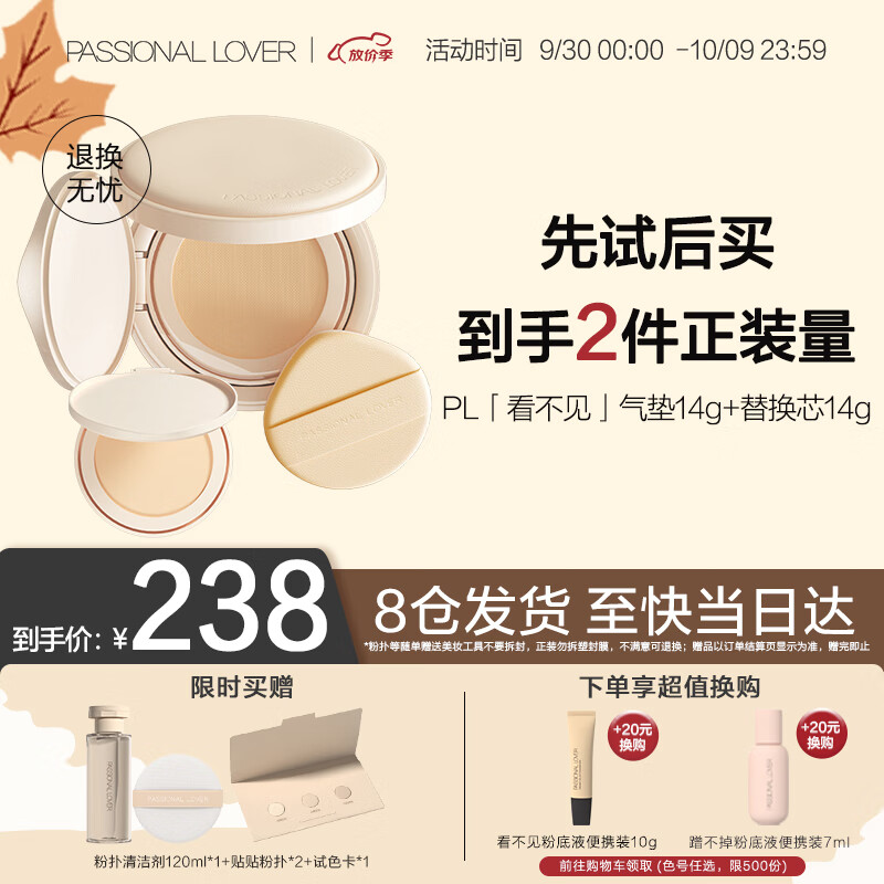 ¥248 恋火(Passional Lover)/PL看不见气垫 01象牙白 干皮奶油肌粉底液持久BB霜 正装+替换芯 268