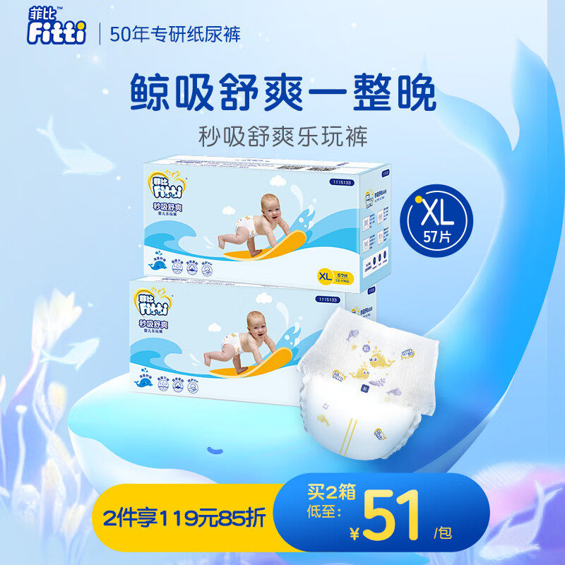 ¥59.9 菲比Fitti秒吸舒爽拉拉裤XL57(12-17kg)加大码裤型尿不湿瞬吸干爽 60