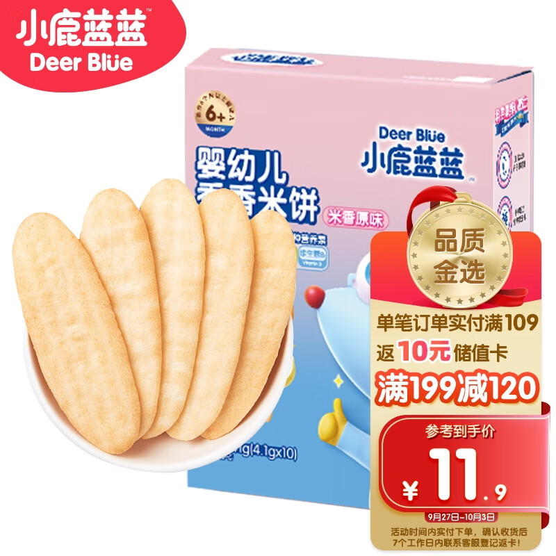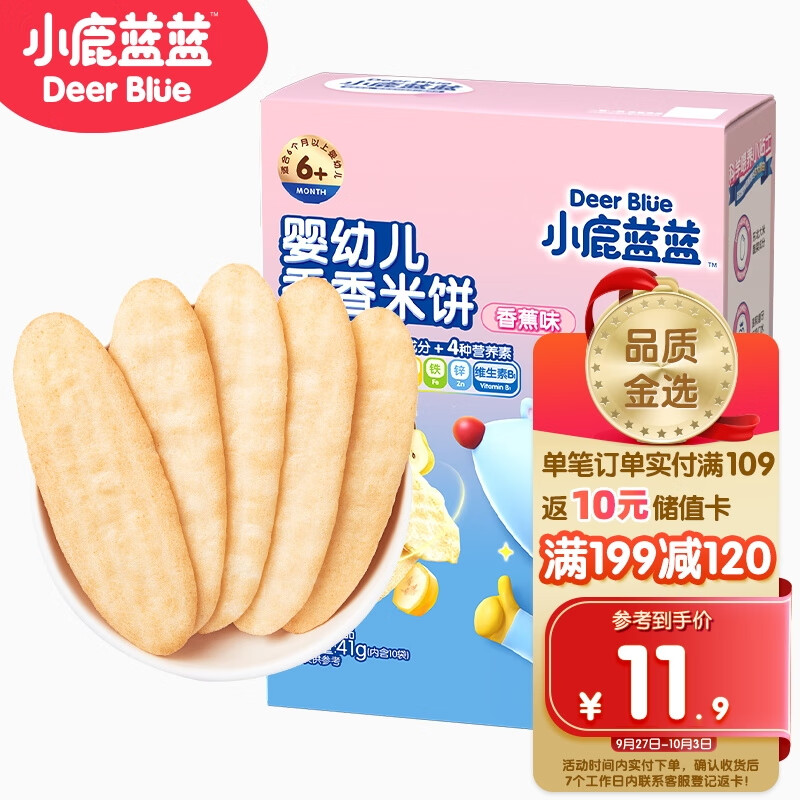 ¥9.9 小鹿蓝蓝_宝宝米饼原味 米饼婴儿零食营养儿童磨牙饼宝宝零食 41g 29.9