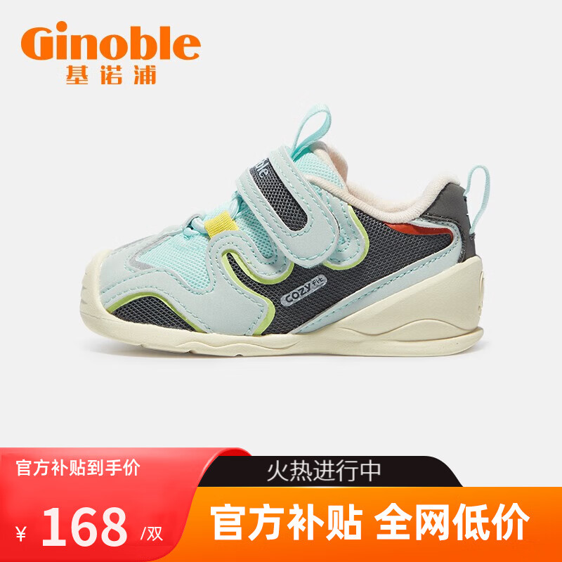 ¥168 基诺浦(ginoble)步前鞋 春季8-18个月婴儿宝宝软底防滑学步机能鞋TXGB1993 水蓝色/深灰 125码_鞋内长约13.5厘米 248