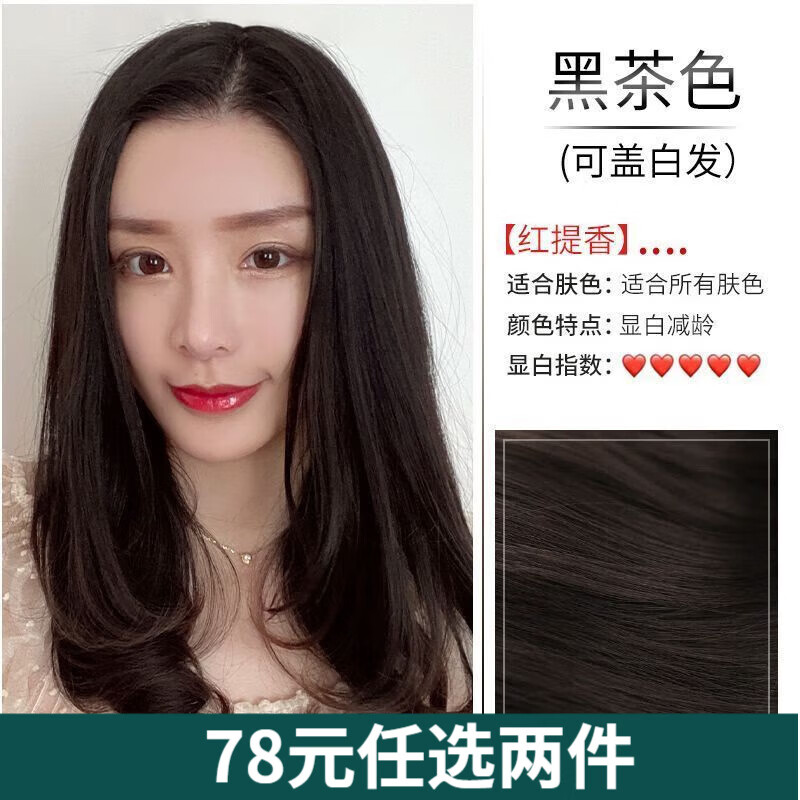 ¥19 韩金靓易梳彩染发剂植物遮白发染发膏不沾头皮男女士染头发染发梳 黑茶色180ml(可盖白发) 59