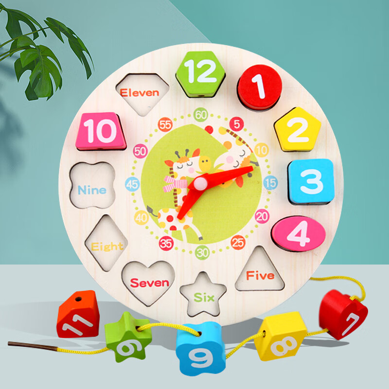 ¥12.9 米粒鼠蒙氏积木时钟数字早教启蒙玩具拼搭串珠2-4岁颜色形状认知男女孩 时钟串珠二合一玩具(款式随机) 19.9