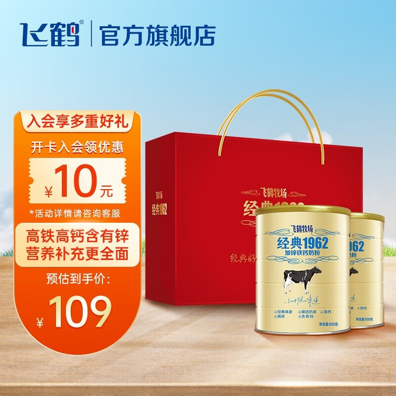 ¥128 飞鹤(FIRMUS)官方经典高锌铁钙配方成人奶粉钙铁锌中老年高钙中秋送礼父母冲饮 听装900g 2罐装 158