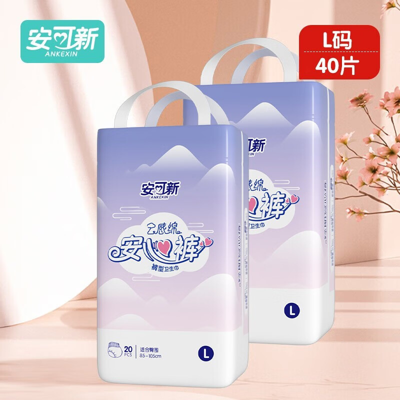 ¥39.8 安可新 安心裤专享夜用裤型卫生巾超熟睡安睡裤量大安全防侧漏夜安裤 经期安心裤40条L码 105.8