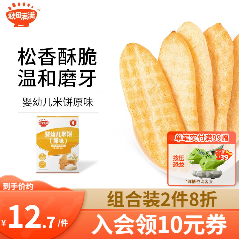 ¥25.9 秋田满满婴幼儿米饼 宝宝零食儿童营养辅食磨牙饼干6个月以上 【3盒装】水果+蔬菜+原味 53.9