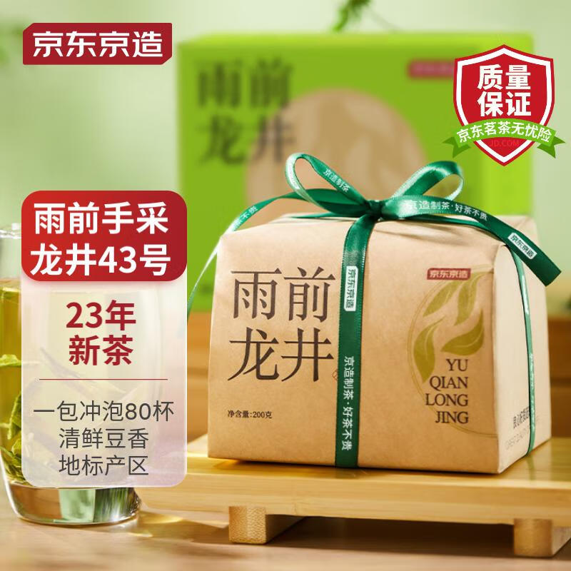 ¥79 京东京造2023新茶绿茶雨前龙井茶43号春茶纸包装200g谷雨香 109