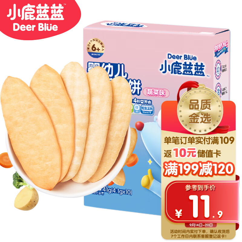 ¥9.9 小鹿蓝蓝_宝宝米饼蔬菜味 米饼婴儿零食营养儿童磨牙饼 41g 29.9