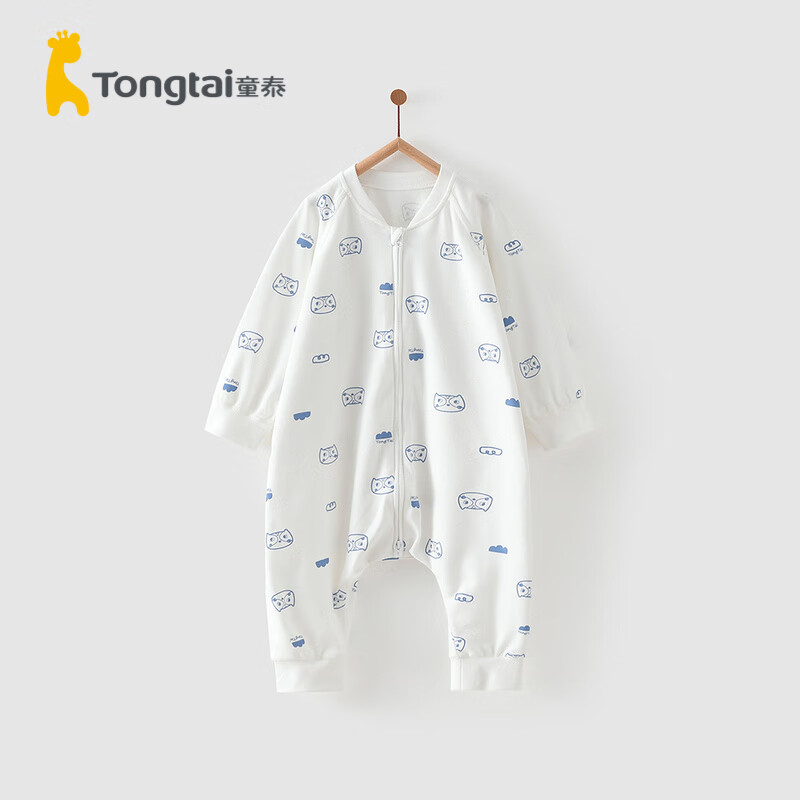 ¥39 童泰四季婴儿宝宝床品用品婴童分腿纯棉防惊跳睡袋防踢被 蓝色 73cm(推荐身高73-90cm) 79