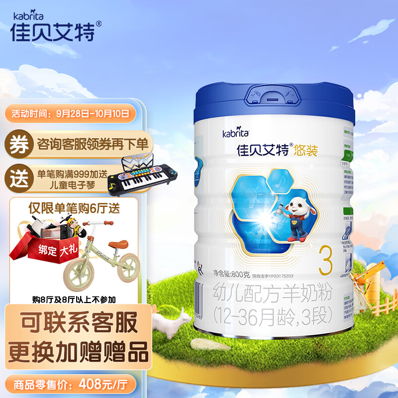 ¥265.42 佳贝艾特(Kabrita)悠装幼儿配方羊奶粉 3段(1-3岁婴幼儿适用)800克(荷兰原装进口) 277.3