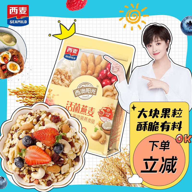 ¥33.4 西麦50%水果坚果燕麦脆350g 水果燕麦片营养早餐五谷代餐干吃休闲零食 35.4