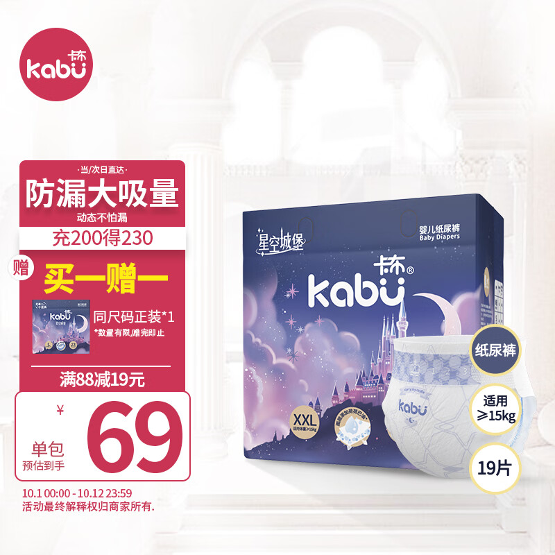 ¥69 卡布KABU星空城堡纸尿裤XXL码19片(≥15KG) 尿裤尿不湿 防漏大吸量 88