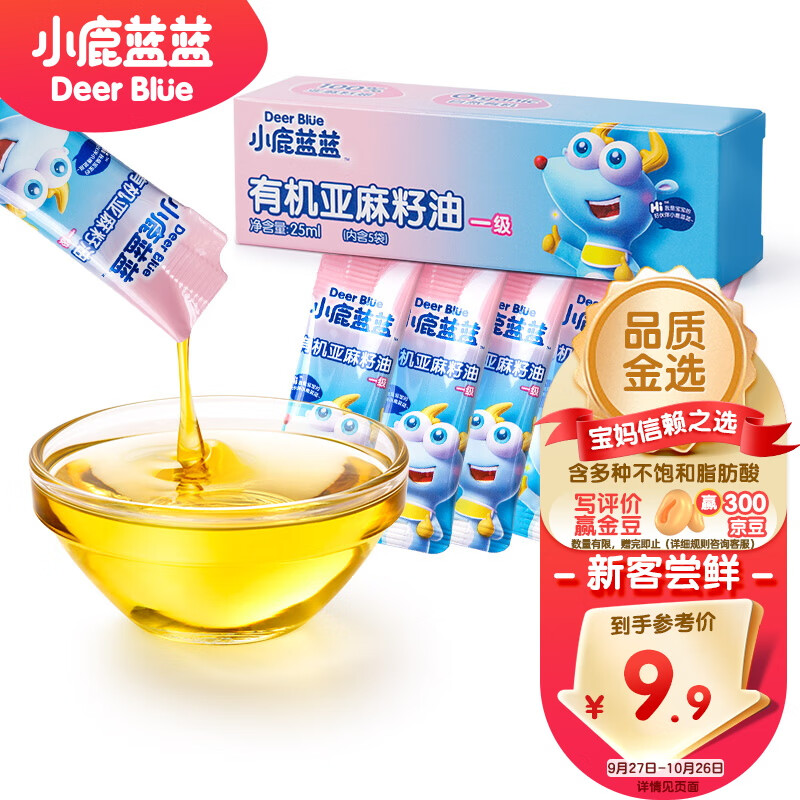 ¥2.9 小鹿蓝蓝【尝鲜装】有机亚麻籽油一级冷榨宝宝油食用油营养油25ml 9.9