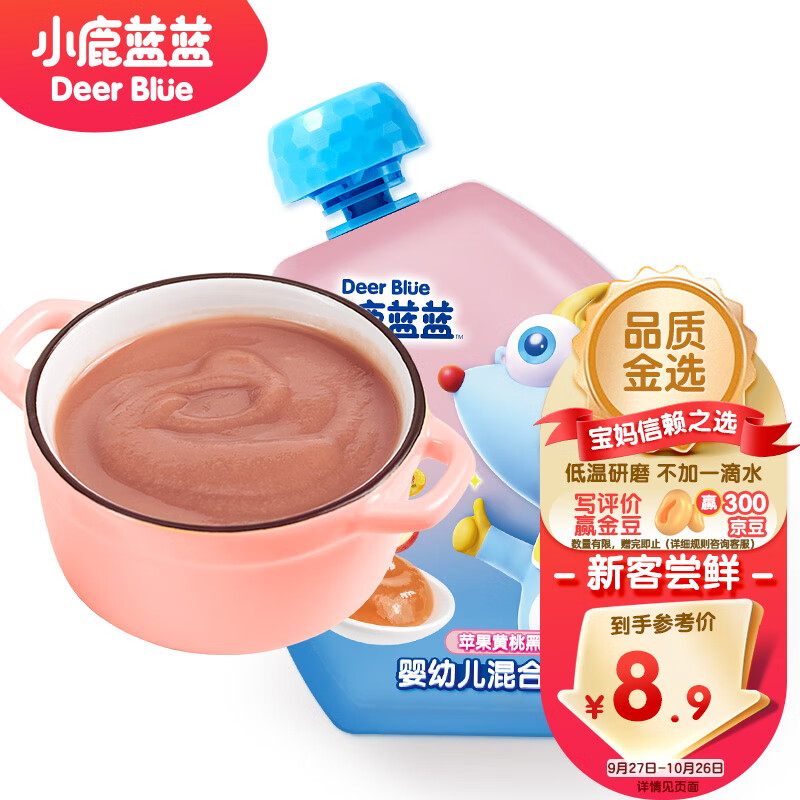 ¥5.9 小鹿蓝蓝_婴幼儿趣味果泥苹果黄桃黑加仑 宝宝辅食营养水果泥 108g 8.9
