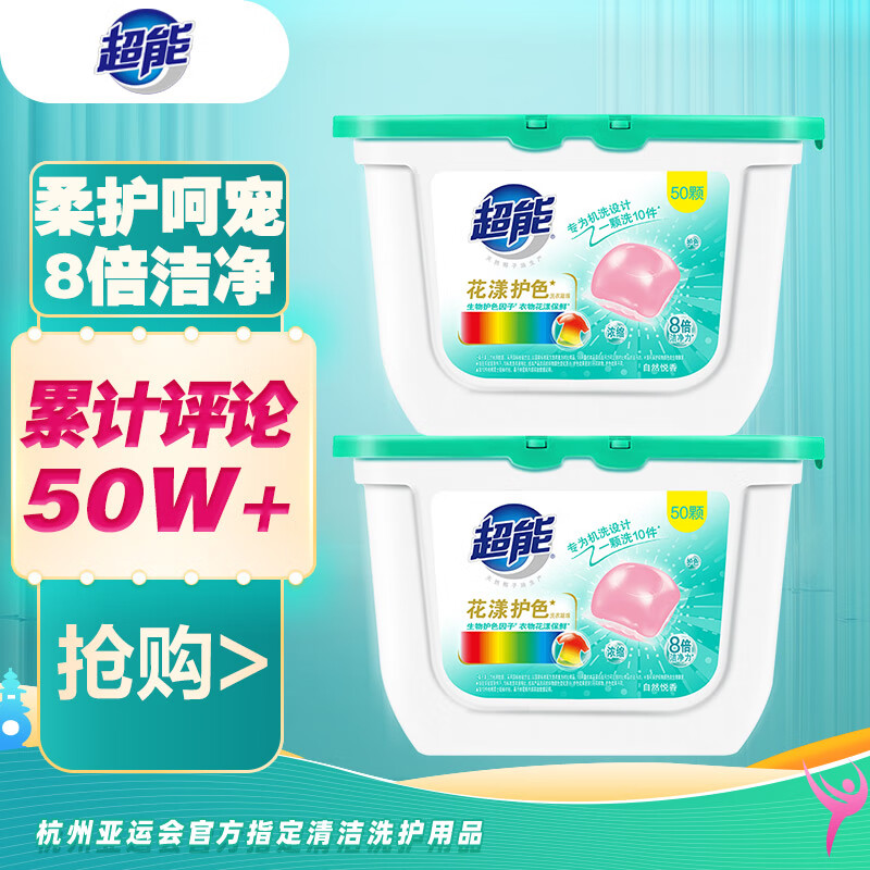 ¥59.9 超能 洗衣凝珠 100颗(两盒装) 欧洲进口防串色黑科技 浓缩8倍洁净 89.9