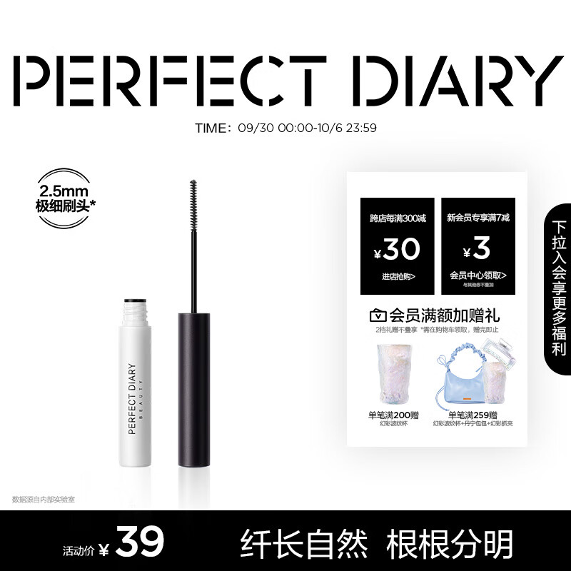 ¥34 完美日记纤长持久睫毛膏黑色不易晕染快速定型旅行便携4.5g生日礼物送女友 39