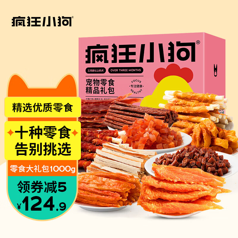 ¥124.9 疯狂小狗 宠物狗狗零食磨牙棒牛肉粒训练奖励 精品零食大礼包 1000g 129.9