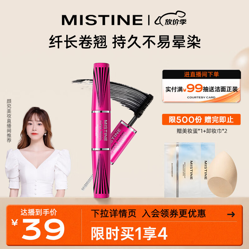 ¥29 Mistine(蜜丝婷)4D双头超模睫毛膏 经典粉 5.5g 立体纤长 防汗不晕染 39