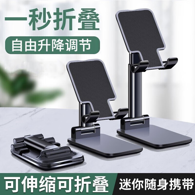 ¥9.9 罗姿 手机支架直播可调节折叠升降创意桌面懒人支架便携ipad平板通用支撑架子主播 可折叠+自由伸缩款【炫酷黑】 39.9