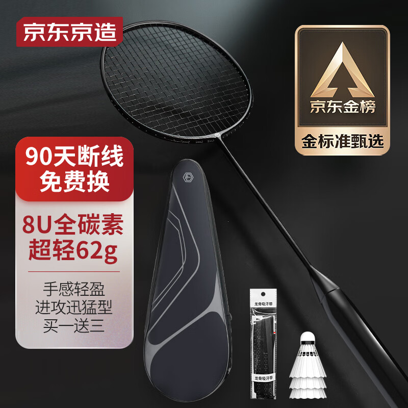 ¥143 京东京造 羽毛球拍单拍 全碳素超轻8U小黑拍 运动训练羽拍 R 300UL 超轻 149