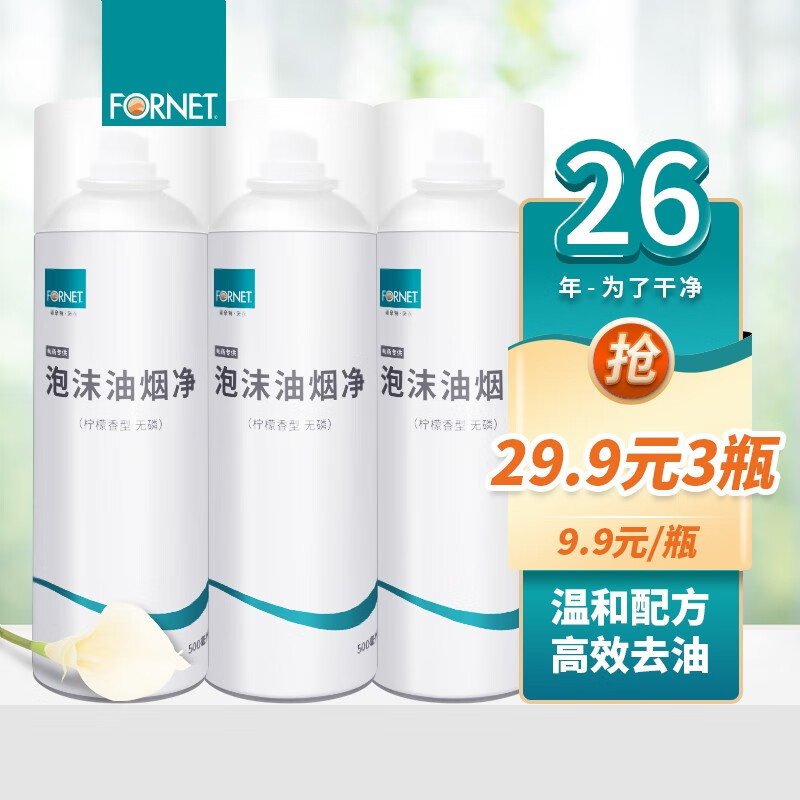 ¥14.9 福奈特FORNET泡沫油烟净500ml 油烟机清洗剂灶台重油污多功能泡沫清洁剂 泡沫油烟净*3瓶 29.9