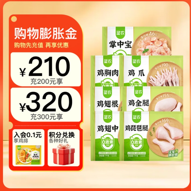 79.9元包邮!圣农 鸡翅中鸡胸肉生鲜轻食餐食品火锅食材 翅中单只30g-40g 鸡翅中2000g