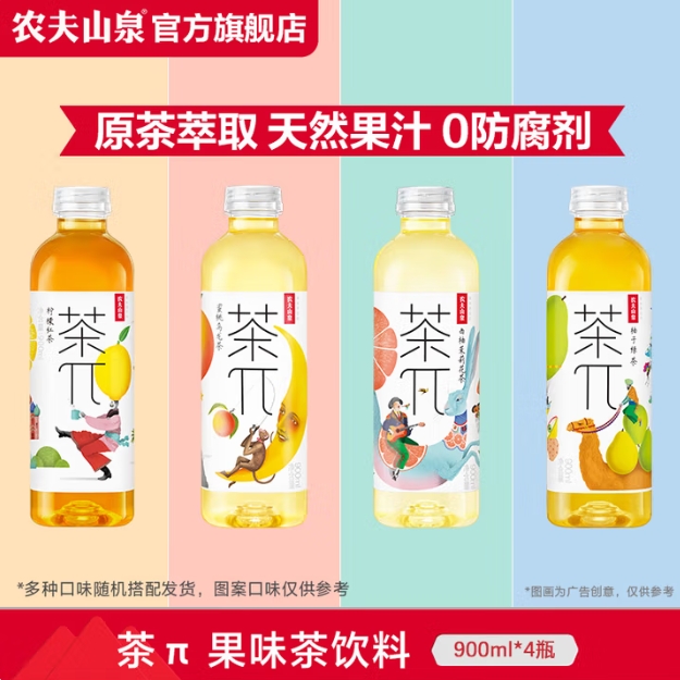 20元包邮!农夫山泉 茶π 900ml*4瓶